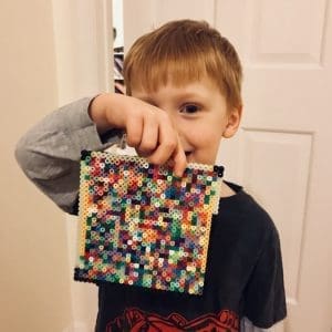 My son loves these melty beads. He is a busy 4-year-old, but he will work diligently for days to make his masterpieces. This is his “beautiful square.” There’s something precious about hearing your child describe something s/he did as beautiful.